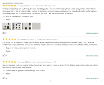 • Zawsze świeża farba – każda partia produkowana jest na bieżąco, bez magazynowania i ryzyka przemarznięcia.
