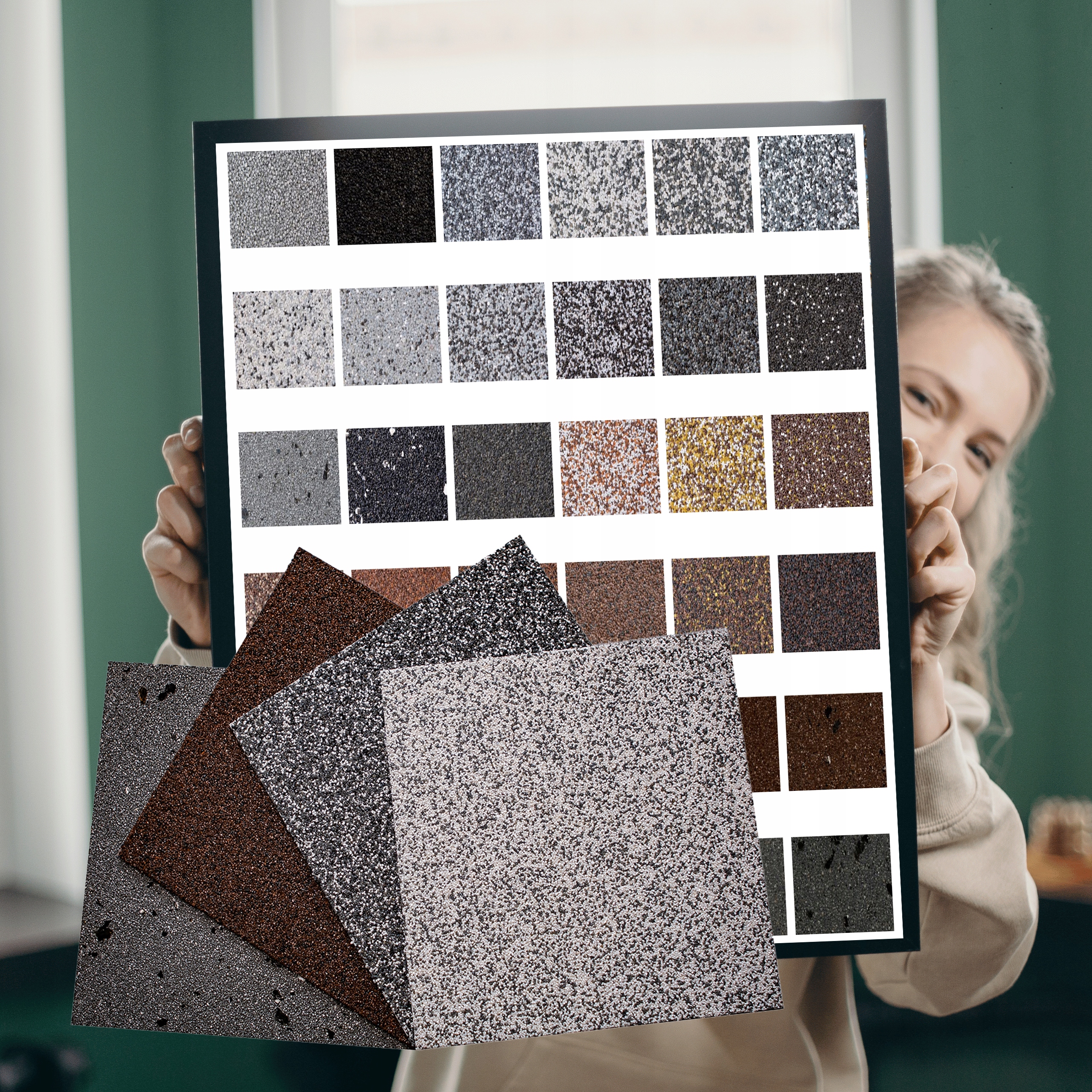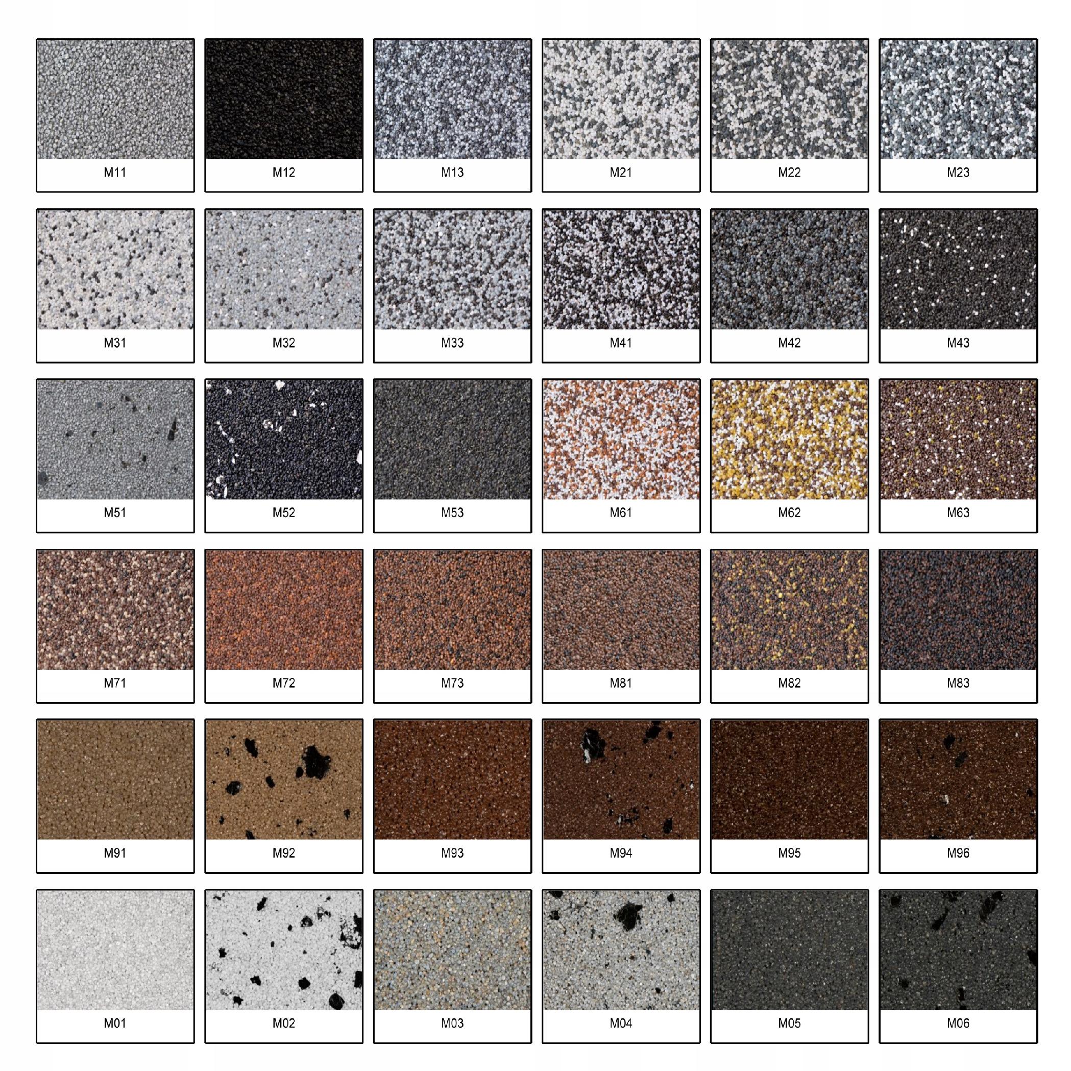 Strona główna » Sklep » Tynk Mozaikowy 36 Wariantów Mozaika Komplet 4 Różnych Próbek Na Podłożu